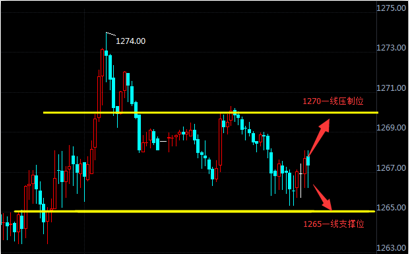 初请前夕黄金走势!分析建议! 国际现货黄金周四(6月1日)亚洲时段微幅回落至1267美元/盎司,整体徘徊在五个月高位附近。周三(5月31日)由于华盛顿的政治紧张局势升温,打压美元兑一篮子货币走低,金价盘中最高触及1274.19美元/盎司。 昨日早间黄金开盘于1263一线,随着因阿富汗首都爆炸事件带来的群众避险情绪,黄金最高冲至