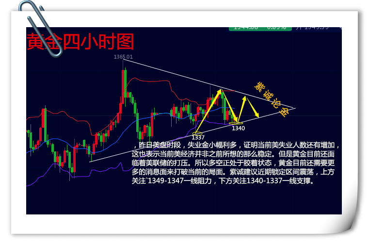 又到周五了,一个星期的工作时间马上又要结束了,回顾一下本周的行情,金价自上周冲高会落后又陷入了震荡当中,起伏比较大,可能对于很多新手来说比较难受,为什么呢?看到行情涨了就进多,进去了就开始跌,看到行情跌了又进空,进去了又开始涨了,来回被扫,不仅是资金不断地缩水,人也对这个市场产生了恐惧,这也是紫诚一
