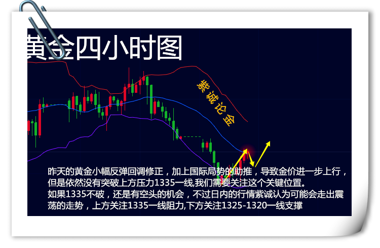 各位投资者大家早上好!昨天说到破位1330做空下看1320一线,看过紫诚文章的朋友一定小赚了一笔吧!投资这座山,原本没有顶、没有头。不要站在旁边羡慕他人成功,其实成功一直都在你身边。只要你还有生命,还有能创造奇迹的双手,就没有理由当过客,更没有理由去抱怨失败。聪明的人,一味向前看,智慧人,事事向后看;聪明人