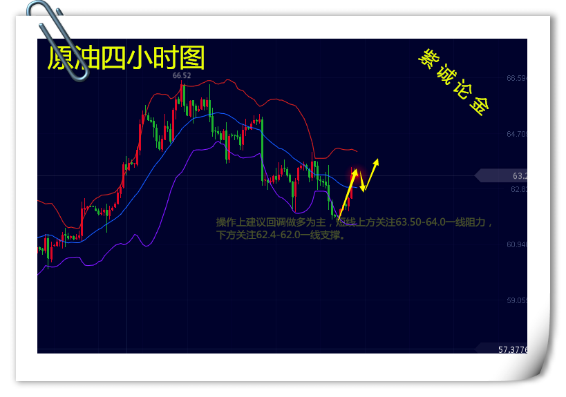各位投资者大家早上好。因叙利亚紧张局势引发市场忧虑。此前有报导称美国军方对叙利亚一处空军基地实施打击,昨天原油一路高歌上涨2.13%至63.26停盘,随着美中贸易争端的疑虑升温,以及美国活跃钻机数量上升影响,紫诚认为今日原油还会涨 原油解析: 原油上周五日线收出大阴线去下探前期的61.8一线,短线受支撑,小幅反弹,