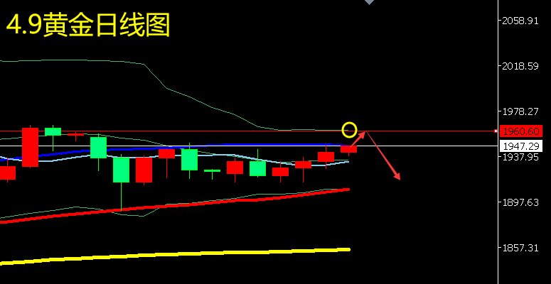 当下我们重点需要合理的去判断,现在考虑的问题是价格是否进入回落过程中,回落到什么位置,价格不管在任何时候都是涨涨跌跌,这才是正道,关键的问题是在涨涨跌跌的过程中,幅度的大小该如何去确定。今天跌明天涨是很正常的事,别把一天的下跌上涨看的太过认真,我们需要理性的去判断,去验证我们的疑问和正确。市场什么情况都会出现,往往出现的情况是你想不到的,也就因为是你想不到的才导致你亏损。是因为你忘记了这方面的风险。 4.11黄金欧美盘行情走势分析: 周初黄金预期在没有基本面明确利好支持下,大概率还是会有技术性回撤动作的,下方着重关注日线布林带中轨与10日均线1933附近争夺,一旦行情跌回其下,则预示行情回归