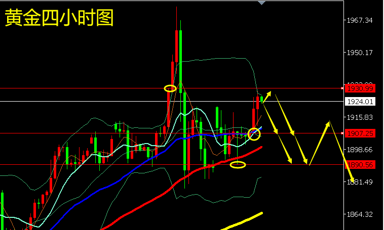 在投资道路上,不管你是新手还是老手,你都需要有自己的原则!一次投资就是一次经历,把握住你的每次成长,俗话说:“吾日三省吾身”,只有学会总结,培养自己的原则,不让自己迷失在投资的道路上,你才能走得更远,站的更高!一个好的老师能带你度过迷茫,找到该走的路,摸清方向,成功就在你转角之后! 3.1黄金最新策略布局: 黄金从4小时来看,此前的冲高回落之后,目前陷入震荡,暂时还处于回调后的修正,短线有待重新选择多空延续,而上周五的低点1878一线是短期的关键防守点,同时也是日线十字K线低点,决定多空延续的位置,若是下破则进一步加深调整空间,反之周初若能在1878一线低点上方维稳。 多头有望强势收复失地。