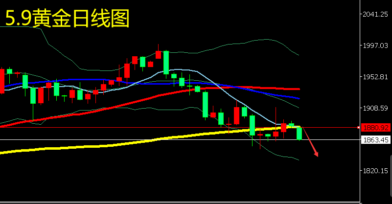 趋势来时,应之随之。无趋势时,观之,静之。等待趋势最终明朗后,再动手也不迟。这样会失去少量的机会,但却赢得了资金的安全。你的目标必须与市场保持一致,顺应市场的趋势。如果你与市场保持一致,利润自会滚滚而来。如果你看错了趋势,就得使用古老而可靠的保护伞–单子止损单。这就是趋势和利润的关系。备战中线布局,接下来的投资路上,我将继续与你们一路前行! 5.9黄金市场消息面解读: 周一(5月9日)亚市尾盘,现货黄金短线持续下滑,金价正逼近1870美元/盎司。美元指数短线快速拉升,刚刚突破104.00大关。受强势美元打压,现货白银维持跌势,现报22.25美元/盎司附近。多数分析机构认为4月非农就业人数虽然