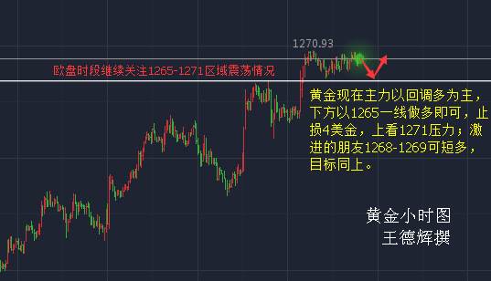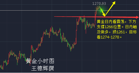 日内黄金开盘震荡横盘走势,最高1270.63一线,当前最低是亚洲盘低点1266.30一线;整个亚盘至目前为止波动幅度十分有限,几乎是于1269-1270上下横盘运行,可以说短线迷失了方向。但是就趋势而言是多头趋势,所以我们整体偏向多头。 需要注意的是,黄金整体多头走势,向上冲高1282以及日线双顶1296都是迟早的事情;只是短线来