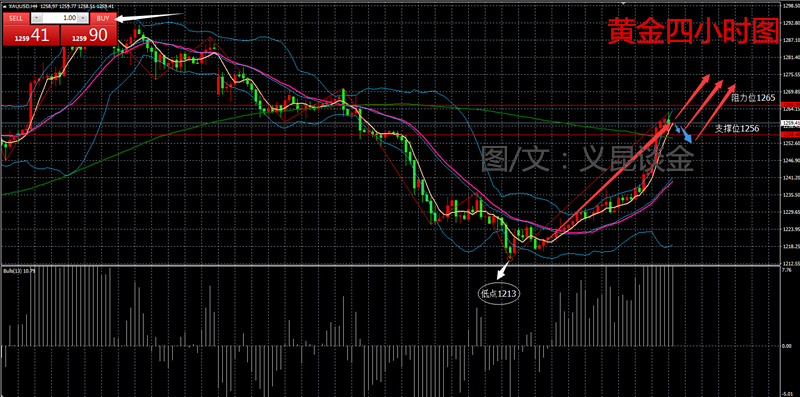 寂静的清晨有微微的清风,微微的清风有丝丝的凉意,丝丝的凉意里有我的轻轻地问候!愿我的问候能消除你酷暑的颜色,带给你更好的一天,愿你在新的一周有更好的工作心情。 上周黄金总的来说还是呈现上涨的趋势,上周助力位在下方1258附近。未来黄金从从先来说,还是有上涨的空间,今年从1123低点上升以来,到后面回调点位
