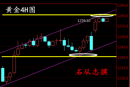 纵观上周黄金走势自最低1226.6至最高1253.3整体上升了26.7美元,周五报收1243.3.这样的表现是否代表黄金进入牛涨阶段,还是面临高处不胜寒的压力?石从志认为黄金后市阶段触顶的回调的概率较大。 黄金白银后市走势分析: 加息之前石从志就说过,加息之后就可布局中长线多单了,初期目标先看1250位置,现在来看黄金已经到达咱