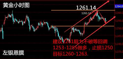 周二凌晨耶伦女王在米根大学发表讲话,一如既往地耶伦女王将太极发挥的淋漓尽致,在讲话中只是反复的重申加息是循序渐进的,而美国的经济表现的非常健康,也正在稳步增长中,耶伦的讲话符合市场预期,因此美元指数震荡收平,现货黄金价格小幅反弹测试1255美元/盎司受阻回落,但是整体价格守稳在1250美元/盎司上方。 周一整