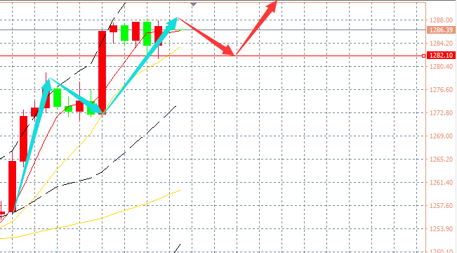 单边伴随长时间整理蓄势,爆量只在那么一瞬间。这是本周的一致格调。本周已经连续两个交易日都是亚欧盘长时间整理,美盘稍晚时段放量破高延伸。昨日不例外。亚盘小幅摸高后出现诱空回落,小周期领先出现诱空的形态,但下跌一天,却未看见明显下跌迹象。整理过渡至美盘时段最低也才1271.40低点,最终守住前一日尾盘低点1268