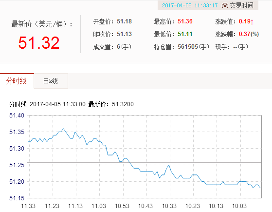 美国对叙利亚发动军事打击, 发射60枚战斧导弹袭击叙利亚机场,作为对化武袭击的回应。一系列商品应声走高,现货黄金短线上涨近10美元至1260美元;白银上涨0.5%,布伦特原油上涨0.6%。 原油分析: 昨日开盘守住5日线50.75支撑上方整理修正,连续过渡至欧盘时段,未能下破前一日低点,最终守住支撑再次反抽探高。日图收复倒锤