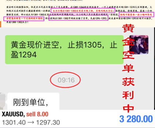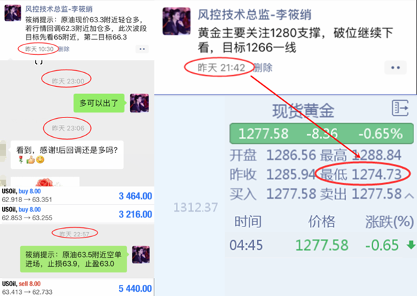 李筱绡5.20:《黄金最新操盘必读》,做对的事,任何时候都是好时机! 读万卷书不如行万里路,行万里路不如阅人无数,阅人无数不如名家指路,名家指路不如筱绡带路,我依然是那个低调又有实力的李筱绡。 李筱绡一周操作回顾—----运筹帷幄之中,决胜千里之外--- 口说无凭,李筱绡只用事实说话,从上周末开始,李筱绡撰文给大家分析了本周行情趋势,一路劈荆斩棘,给了你无数的机会却跟不上我连续止盈的节奏。 上周五黄金波动反常,1280关键支撑破位,你还在一路加仓多,筱绡早已说过,1280破位后势看跌,目标1266附近,晚间最低跌至1274附近,离咱们空单目标只有8个点。原油波动也是惊险,洗盘的行情,咱们拿的