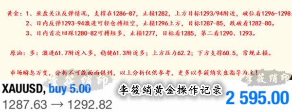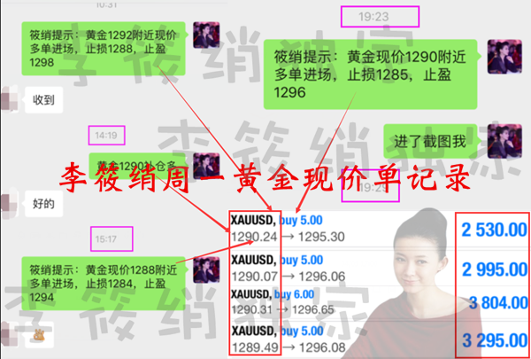 4.9李筱绡:黄金多头终迎大反攻,原油上涨正得意!日内回调还需多! 人生,所有的经历都是一种财富——筱绡语录 工欲善其事,必先利其器;日内交易计划! 黄金:多1294-96位置多,止损1290,看1301/1304; 空:触及1306轻仓空进场,止损1310,止盈1300-1298。 原油:多:稳健者63.0进多,激进63.7-64.0附近多,防守62.6,目标看65.0-65.5! 空:首次触及66一线空,止损66.5,止盈64.6-63.1-62.6; 市场瞬息万变,分析不可能面面俱到,以上分析仅供参考,更多以李筱绡实盘指导为主! 原油波段多到目前价格64.7位置,已有600多