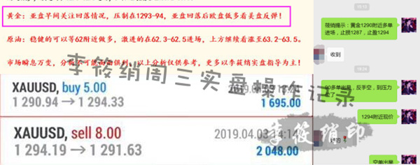 4.4李筱绡:黄金原油日内交易策略,非农回本方案已备好!跟上即赚! 非农,每个月的定时炸弹即将引爆,是烟花般的美丽,还是地雷般的吓人?持续清淡的投资市场能否借助非农这股能量不再延续这死水般的波动,每个月,这是属于你与筱绡共同的日子,无论在过去的交易中如何,非农夜,是属于所有博弈的人们,也是改写最近投资历史的绝挂机会,抓住了屌丝可以逆袭一把,最起码会愉快半个月,抓不住或者抓错了,那伤心之余也会被讥笑,我常说,这个市场就是一半人笑另一半,过去的非农我们一次次如手术刀般的抓住了属于自己的利润,这一次,也绝对不会例外! 上周操作记录如下—现价指导凭证、布局思路全网可查! 原油波段已获利400点,这并