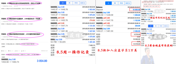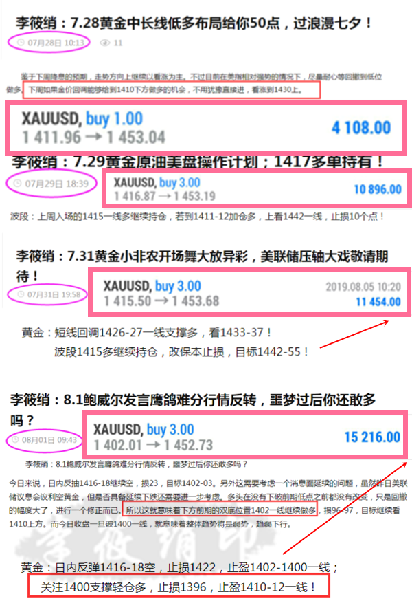 李筱绡:8.6黄金回调没有到位,波段拿稳看1445一线支撑! 读万卷书不如行万里路,行万里路不如阅人无数,阅人无数不如名家指路,名家指路不如筱绡带路,我依然是那个低调又有实力的李筱绡。 黄金原油近期暴涨暴跌,你还在一路逆势加仓,刚入市场就被淘汰出局?如果你没有稳定的思路、没有严格的止损、没有基本的教学,而只是一味用盈利作为诱饵,这绝不是稳健的投资!那么,如果你还陷入这样的困境里面,希望我能帮你从懂得这个市场开始,再谈盈利,实力需要在实时行情中验证,而非一两次的收益! 8.5黄金原油操作记录: 黄金上周五遗留的1440多获利出局,回调43一线继续多,看涨目标1448