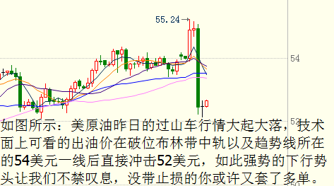 周一油价重挫近4%,因市场担忧伊拉克原油出口创纪录新高以及美国原油产量回升恐令减产效果大打折扣,美元回落也未为油价跌势。美国WTI原油期货价格盘中最低触及51.83美元/桶。截止收盘,WTI原油期货跌3.76%,报51.96美元/桶,布伦特原油期货跌3.78%,报54.94美元/桶。昨日的暴跌,相信那些做单不喜欢带止损的又套了多单,那