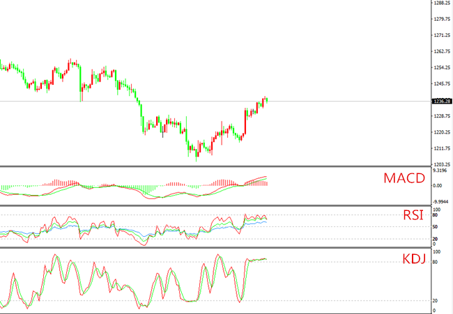 黄金 7月12号晚间,耶伦再次发出嘹亮鸽声,黄金趁势收复1220位置,最高触及1225一线,上方重点关注四小时线MA60均线阻力位,这一线上破,黄金会出现一个较大涨幅,上方可以直接看1240美元附近; 现货黄金死守1200关口终于等到一线生机,目前黄金市场还将受到耶伦发言的支撑,短线关注1226,此处破位可以继续追多,回落做多也