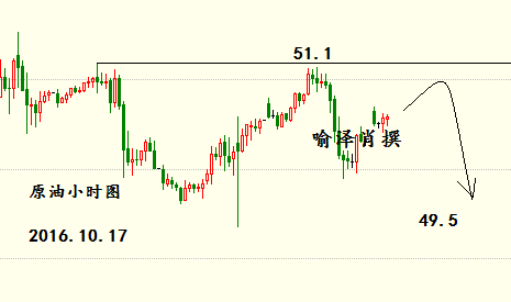 原油,昨天之所以没能连续上升,喻泽肖认为就是因为白天的回调幅度深了,本来预计的是欧盘回踩51直接上涨,那突破前高就不是问题,欧盘强势美盘延续也就不是什么问题,但由于小时线欧盘冲高回落,导致美盘上行力度不足,探高51.5即受阻回落,日线转阴,目前高位还是个震荡的过程,但是注意,这里喻泽肖并不是说转弱,由于前