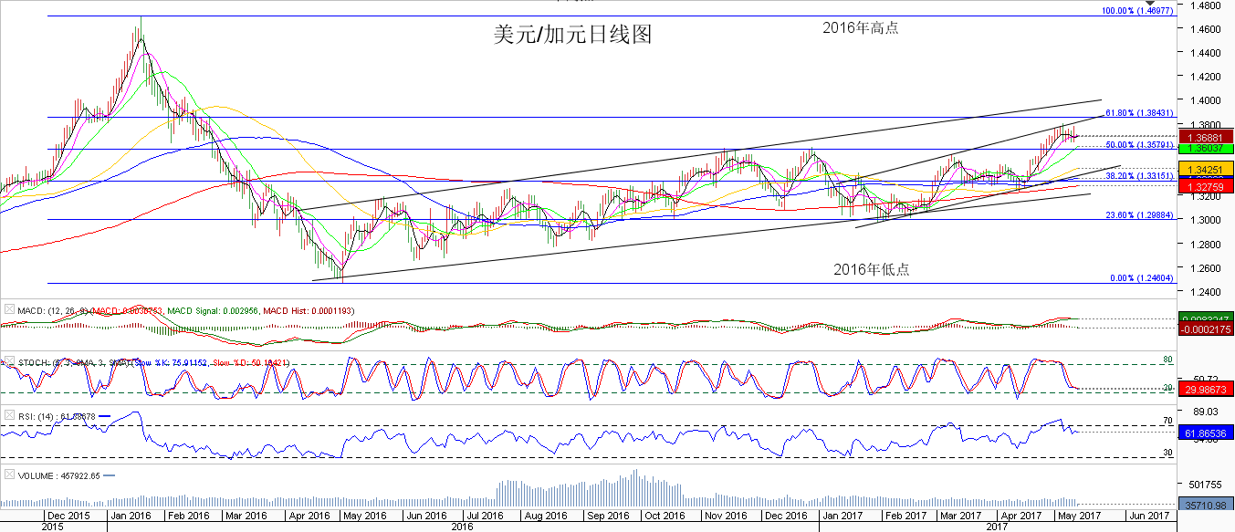今年以来,原油价格下跌超过14%,美国和布伦特原油最低跌至44和47美元下方,完全回吐去年11月30日OPEC达成减产协议以来的涨幅。近期,加拿大楼市泡沫出现爆发迹象,再加上美国对加拿大的贸易打击,投资者对加元看空情绪日益上升。 5月25日,OPEC将举行成员国会议,主要讨论是否延长减产协议以及减产幅度。种种迹象表明,OP