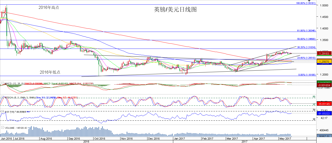 5月11日,英国央行公布利率决定、会议纪要及季度通胀报告,决定将利率维持0.25%不变,QE规模维持4350亿英镑不变。决议公布后,英镑/美元短线下跌,欧元/英镑短线上涨,金银波动不大。 5月利率会议,英国央行以7比1的投票维持利率在0.25%不变,8比0的投票维持央行资产购买规模4350亿和企业债购买规模100亿英镑不变,符合市场