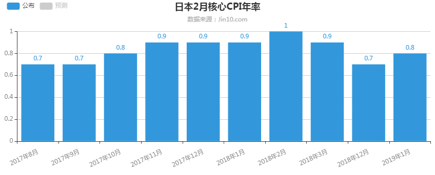 3月15日,日本央行利率决议决定维持基准利率-0.1%不变,维持政策利率的前瞻指引不变,维持10年期国债收益率目标在0%不变。日本央行还将继续以每年约80万亿日元的速度购买日本国债。在全球央行统一“鸽派”战线的大背景下,该结果符合市场预期。 日本央行行长黑田东彦会后召开的记者招待会上称,全球经济增速放缓正在影响日本的出口和生产,但日本经济仍将维持温和扩张,因此,继续当前的政策是合适的。根据最新数据,日本1月核心CPI同比仅增长0.8%。在全球经济放缓的大背景下,日本2月制造业采购经理人指数(PMI)跌至48.5,是该数据自2016年9月来首次跌至荣枯线下方。另外,日本1月出口