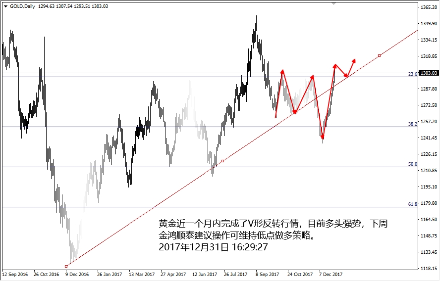 市场消息 美联储12月加息及税改尘埃落定之后,黄金出现了大幅度反转,不过,黄金走势提前走出预期,年线收官站上千三关口。税改议案提升通胀率,导致投资者买入黄金与通胀对冲,加上年底黄金市场进入超买阶段,金价如期上涨,影响了黄金的走势。 2018年全球风险事件、全球地缘政治局势动荡不断升温,黑天鹅事件或涌入投资市