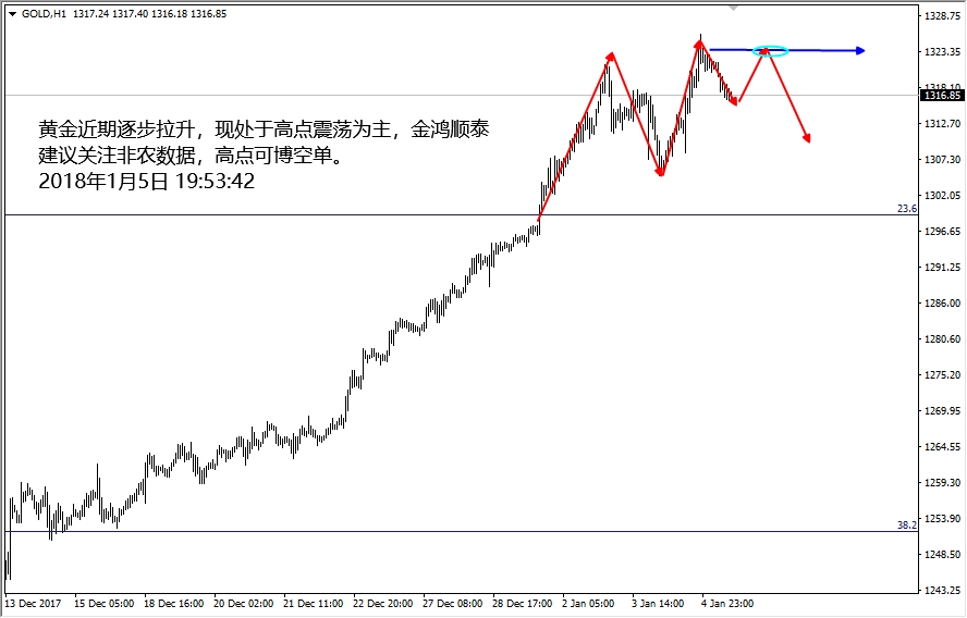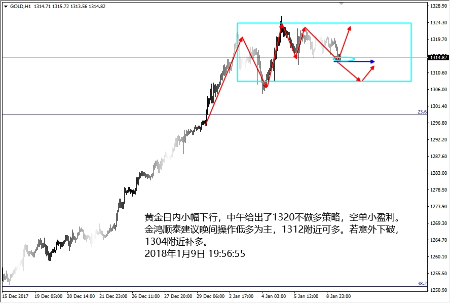 01-04小非农来临,晚间黄金原油走势分析及策略 市场消息 昨日黄金开盘急涨上破1320美元高点,随后快速回落1311美元附近,跌幅达十美金。此轮回踩主要源于买盘选择在美联储会议纪要前选择获利了结,金价高位上涨已经背离技术面指标。昨日早间的一波急跌导致亚欧盘维持震荡,这种行情延续到了美盘,而美盘金价多次上行受阻