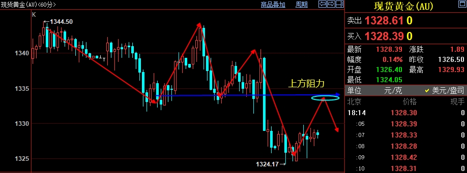 01-18晚间黄金原油交易策略及明日主力合约分析 【国际黄金】 黄金日内小幅震荡行情,小时图上可以看出高点1344开始逐步震荡下行,目前日内低点1324.05,现小幅震荡上行之中。上方阻力在1333一线,另外需要关注晚间21:30初请失业金数据,多头能否反弹修复值得关注。建议投资者维持区间震荡策略,1333及上方可择机看