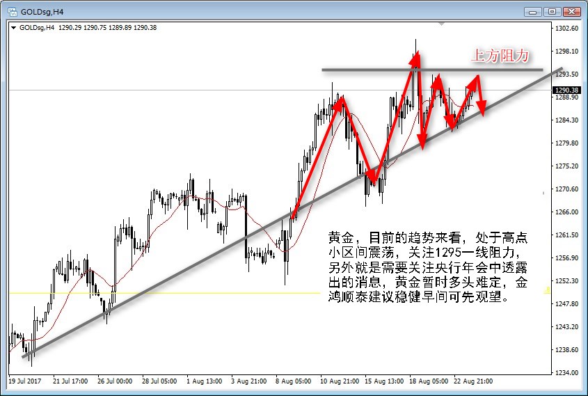 8-23后半夜黄金原油分析及操作思路 市场消息 美联储于今日凌晨公布的7月贴现利率会议纪要显示,在7月政策会议前,12家美国地区联储一致投票决定保持贴现利率在1.75%不变。地区联储官员认为鉴于通胀较为疲弱,当前的利率水平是较为合适的,而部分美联储理事提及通胀依然低于2%的目标水平。多名美联储理事认为劳动力市场将