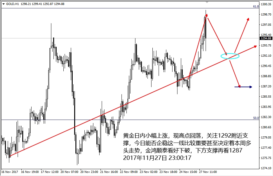 11-29晚间美盘黄金原油分析及操作策略 市场消息 周二(11月28日),金银市场坐上疯狂过山车!北京时间22:44分左右,金银突遭巨量卖单打压,惊现坠崖式下跌,黄金价格急坠约6美元,最低触及1290.2美元/盎司,不过,在美联储候任主席鲍威尔的听证会开始后不久,黄金很快收复跌幅转而上扬,在隔夜23:40左右升至日内新