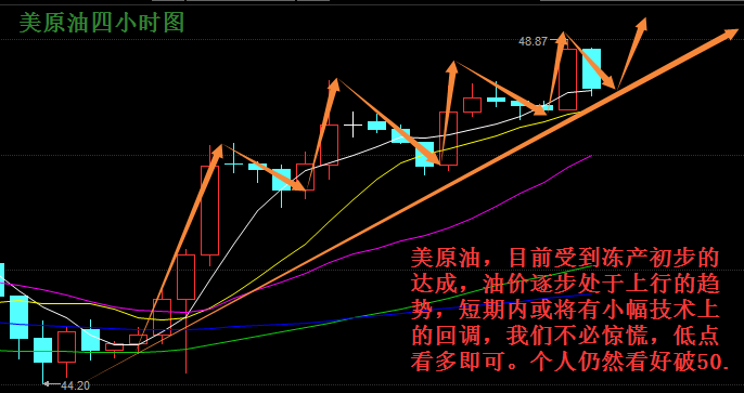 金源利来:10-06美盘策略,宁贵沥青、大冶银、铜分析 继API原油库存意外爆减之后,EIA原油库存骤降录得五连降,国际原油价格急升2%触及49.97美元,创6月以来新高。OPEC继达成冻产协议之后,OPEC和非OPEC产出会议即将来袭,油价大涨在即。 周四(10月6日)亚市盘初,国际原油价格低开震荡,徘徊在50美元下方。美盘一