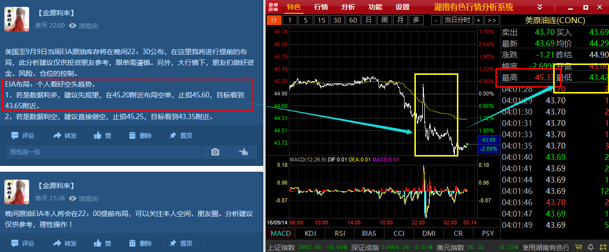 金源利来:9-15早评,原油EIA大获全胜,高位多单如何解套 今日中秋节,首先金源利来在这里祝大家中秋节快乐,投资之路犹如皓月,圆圆满满。另外我平台假期正常交易,继续把握大行情。 昨日晚间公布的数据显示,美国9月9日当周EIA原油库存减少55.9万桶,预期增加400万桶,前值减少1451.3万桶;汽油库存增加56.7万桶
