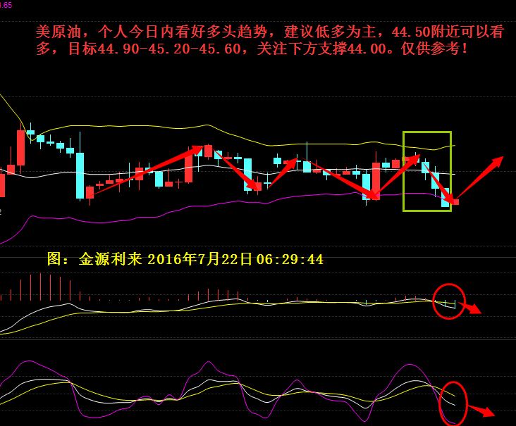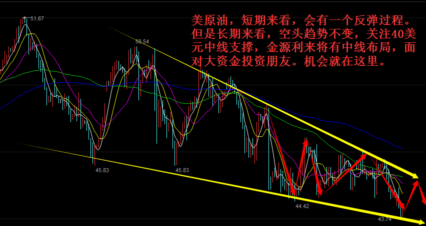 金源利来:7-26晚间建议,天然气、白银全线看空 文/金源利来(新浪博客:金源利来) 美原油,市场刺激和技术面来看,大趋势还是看空,晚间或许会有一波反弹,激进者在42.50附近看多,目标看到43.35附近,稳健者只做空,不要把握多单利润,行情反弹至43.50-43.75附近做空,目标看到42.45附近。仅供参考,有兴趣的朋友可以把