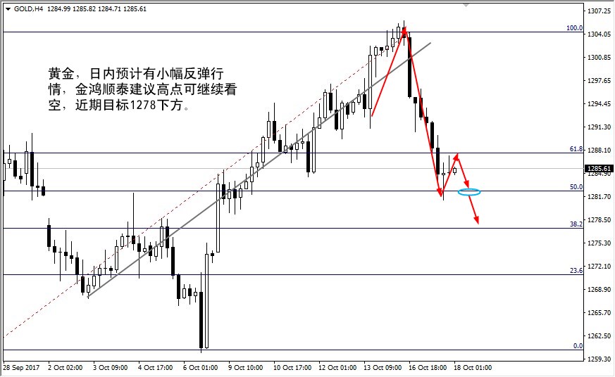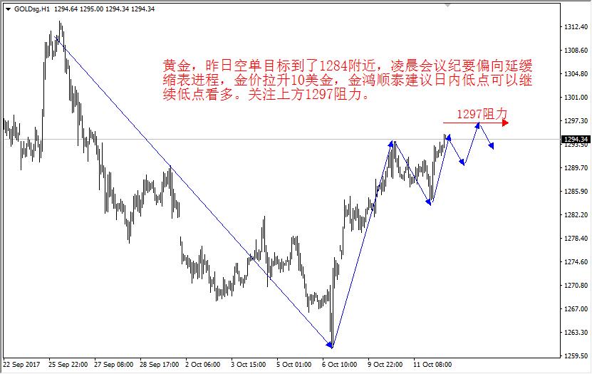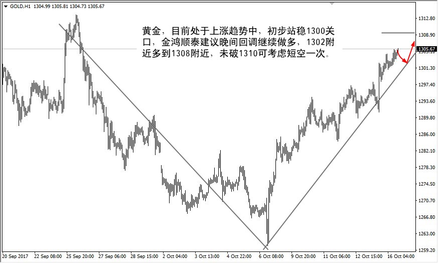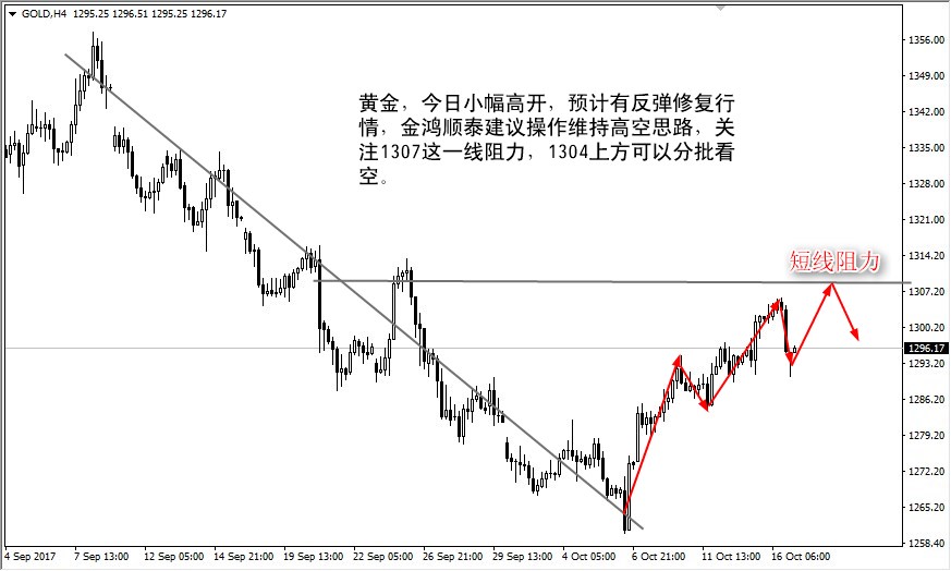 10-17早间黄金原油走势分析及外汇货币操作策略 市场消息 昨日晚间后半夜,黄金开始大幅下跌,跌幅超过10美金,日内整体跌幅超过15美金。笔者分析导致黄金大跌的因素主要有三个,一方面,特朗普的关于税改的发言。美国总统特朗普:相信税改能够获得足够多的支持票。特朗普称花了大量时间与美国参议院多数党领袖麦康奈尔相