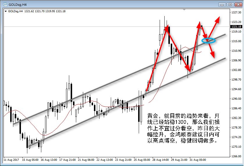 市场消息 隔夜黄金价格再度爆发强劲的上涨行情,因美元走弱,此前温和的通胀数据抑制了投资者对今年年底再度加息的预期,而新的地缘政治紧张局势提振了黄金的人气。在8月最后一个交易日里,黄金实现了完美收官,即便周五非农利空,以黄金目前的点位也能守住1300大关。 官方消息美国国防部长马蒂斯31日表示,他已签署美军向阿
