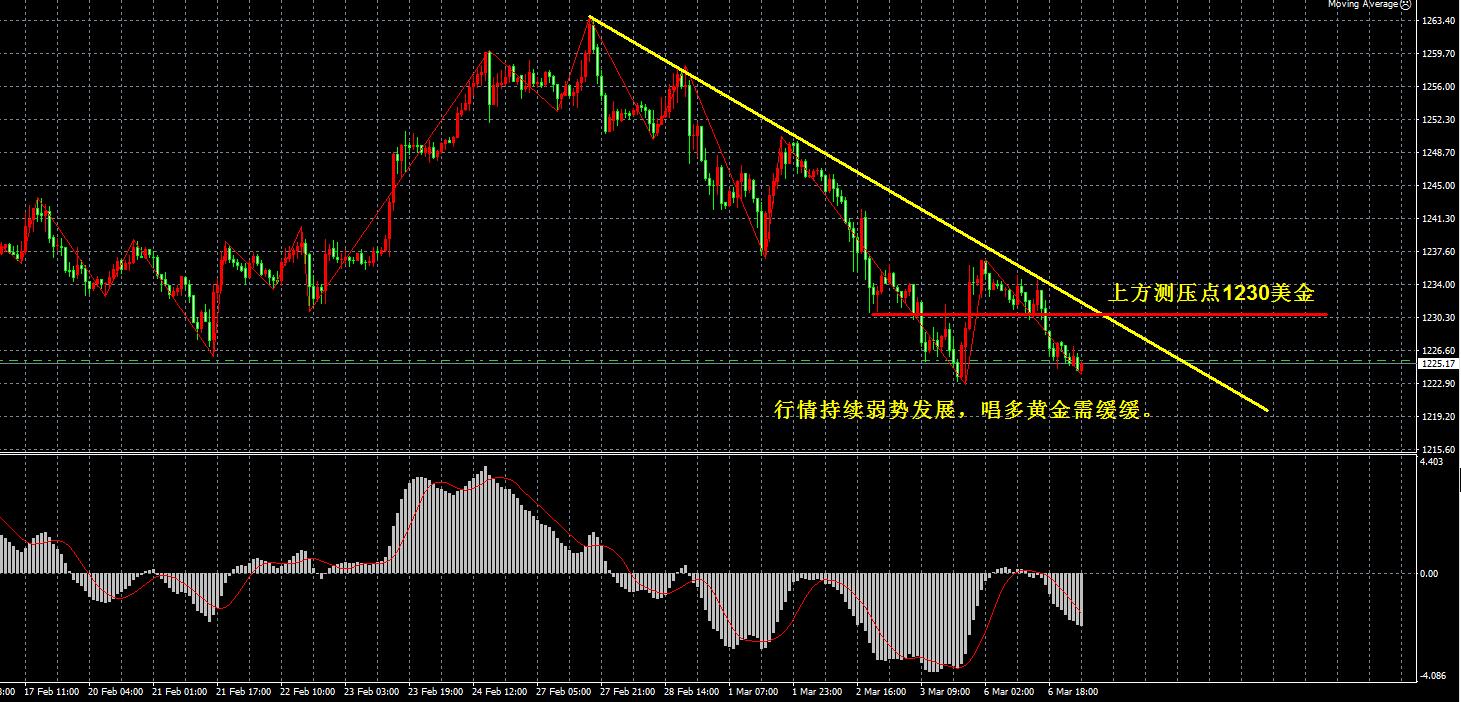 。作者|菲特投资 。本文经授权发布,媒体转载请联系原作者授权,转载务必注明作者和来源公号,请勿擅自修改文章内容。 市场动向 黄金 周一(3月6日),外汇市场主要受美联储耶伦鹰派言论影响,持续弱势发展,震荡下跌。另外,美国1月工厂订单连续第二个月增加,表明制造业复苏势头不断增强,进一步支撑美元上行。日元逆势上