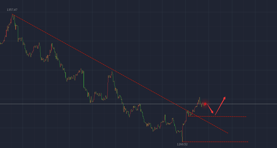 涨势大热,毫无回调,是继续上涨,还是触压回撤,你是套了单还是已经获利出局。下方分析仅供参考,解套仅供参考。 黄金亚盘上涨,但是没有突破中轨,也是受到昨日高点一线的压制,没有延续昨日的强势上升,暂时等欧盘走势来决定强弱。欧盘如果能守住1280一线支撑,那么再考虑做多。 黄金周二的强势,大家都看到了,经过周一