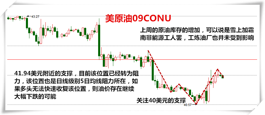 周四日间国际油价反弹受阻,美原油9月期货再次承41.9美元整数关口,布伦特原油则承压于43美元整数关口,EIA汽油库存的意外较少未能支撑油价进一步上涨,市场对供给过剩仍然极为担忧,日内美元的反弹亦令油价承压。晚间原油深v反弹,但是美原油依旧承压于60日均线42美元处。 今日(8月5日)晚间8点半就将公布大家期待已久的