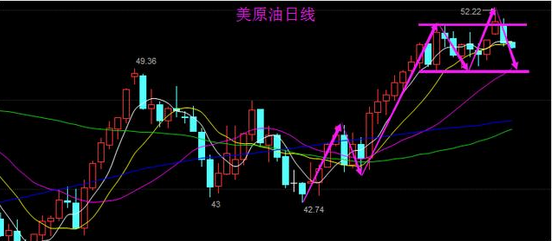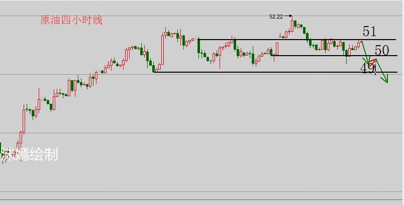 本来是平平淡淡的周一,但是行情没有平淡,从早上6点开盘后行情略震荡,接着就大跌下来,震荡之后,接着来了一波大的反弹,也达到了今天的最高点50.98,在这个点位的时候,我相信有很多投资者,在这个点位时候相信行情会涨上51美元,万万没有想到行情给了你一巴掌,没想到吧,行情就这么诡异。如果你也有上面的想法的话,我