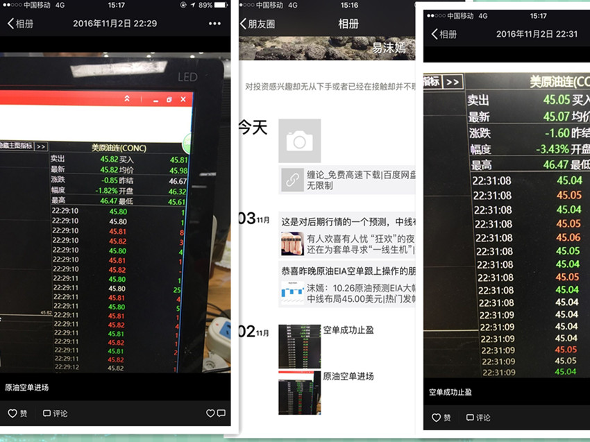 晚间EIA数据公布,美原油库存减少,晚上EIA数据自然是利多,同时NYMEX最活跃12月WTI原油期货合约北京时间10月26日22:30-22:31两分钟内买卖盘面瞬间成交44530手,总价值逾22亿美元合约促使美油短线上扬近1美元,导致行情回调迅速上涨。今晚市场套空的投资者不用说,肯定是一大批。 被套的投资者百分百是没有设置止损的习惯,