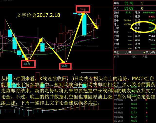 【 文宇论金 】:2.20原油高开 此点位大胆做空 油银操作建议 【 行情回顾: 】 周五晚盘黄金探高点最高触及1243价位,盘中多冲高,但都未能成功上破,一鼓作气,再而衰,三而竭,黄金高点久攻不破,必要反转下跌,而且一小时K线形态上也给出的明确下跌信号,我们周五晚盘果断将多单平仓后反手1242做空目标锁定1237一结的目