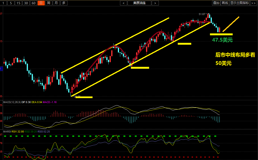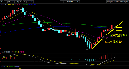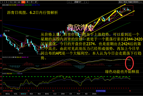 原油方面解析:从技术面上看,日k图周五沥青录得大阴,淹没了前几个交易日沥青价格的回暖,日线图中的2次探顶形成空头趋势,第一次探顶位置2500,第二次探谈顶位置2430附近,二次探顶位置刚好也是美原油50美元附近,鑫欣预计此波下跌位置同样会测试前期低点2200附近, 但是行情不会一次性就这样走完。鑫欣预计在测试前期低