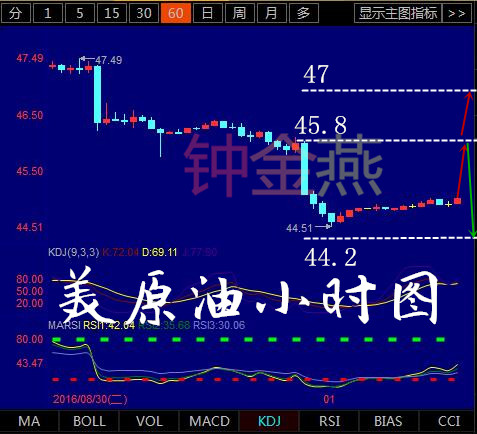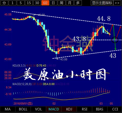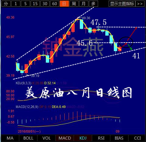 前言:周线收官,我们先以八月整体的行情来分析,熟悉行情的人都会有所注意,原油8月的上半月基本都是涨势,那么这种涨势在临近月尾的时候进行了反转的趋势,空头越来越强势,几乎没有回旋的余地,一直空头到43美元,但是这也就是所谓的绝处逢生,9月2日的大非农是拯救的行情,至少是有所弥补空单被套的投资者,行情走过8月