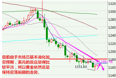 李旭融:12.15现货黄金加息尘埃落定,抄底时机未到 美联储加息靴子终落地,黄金破位下行后市还会跌吗? 市场对此期盼已久,美国联邦公开市场委员会(FOMC)宣布加息25个基点,一般而言,如果美元继续走强,这将会对金价形成打压,继续削弱黄金的避险需求。值得注意的是,美联储预计2017年加息三次,9月会议时预计加息两次。 美