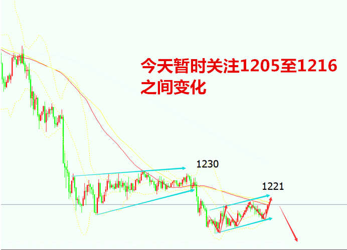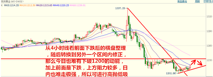 早日现货黄金冲高回落,亚太盘受美元回调影响,金银持续走高,最高触及1221美元,随着晚间公布的美国10月成屋销售表现好于预期,年率更是创下9年半高位,表明美国四季度经济增速将继续加快;11月19日当周美国连锁店销售年率增长1%,之前一周为增长0.9%美元再次反弹金银开始承压,最低跌至1205美元附近,由于数据影响力有限,