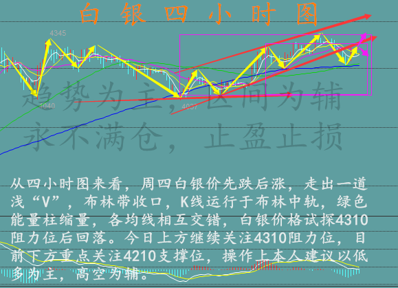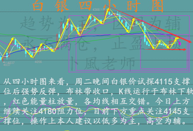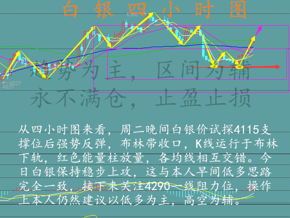 每天的行情,不约而至,涨涨跌跌,有太多的利润总是与我们擦肩而过,寒来暑往,这就是这个市场的魅力所在。激情重在重复上演,守住心中的那份清明,成为一种风度,宁静而致远,淡定而从容。 【有色白银技术解析】 从日K线图来看,布林带收口,MACD双线于零轴上方死叉运行,绿色能量柱放量,KDJ三线向下扩散,MA5下穿MA10、M