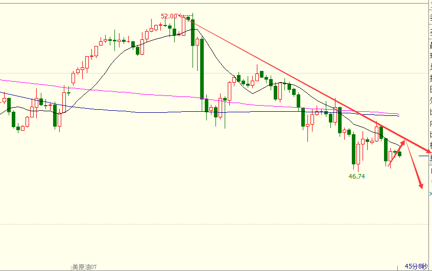 6.9静候英国大选结果 黄金预防黑天鹅爆冷走高 原油空头何时到底? 6.9原油日内分析策略: 原油周四惯性刷低,亚盘小幅反弹修正,欧盘46.16承压转弱,刷新周内低点至45.20附近。慢惯性延续前一日的大阴线刷低。但整体深度有限,毕竟进入低位区域。下探后美盘时段反抽重新回到46.0高点。最终收盘在中性。低位过山车的震荡。
