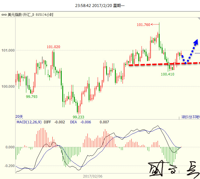 美元昨日亚洲盘欧洲盘一直是震荡于101.00区域附近,市场白天缺少消息引导更多的是技术性震荡为主,晚间美国开盘以后美元大幅度的下跌,市场的焦点是美元3月会不会加息以及3月非农数据是核心,短期没有消息技术性走势为主。晚间美国达拉斯联储主席讲话:当前的货币政策高度宽松。美联储应当宜早不宜迟地行动,但速度必须缓慢