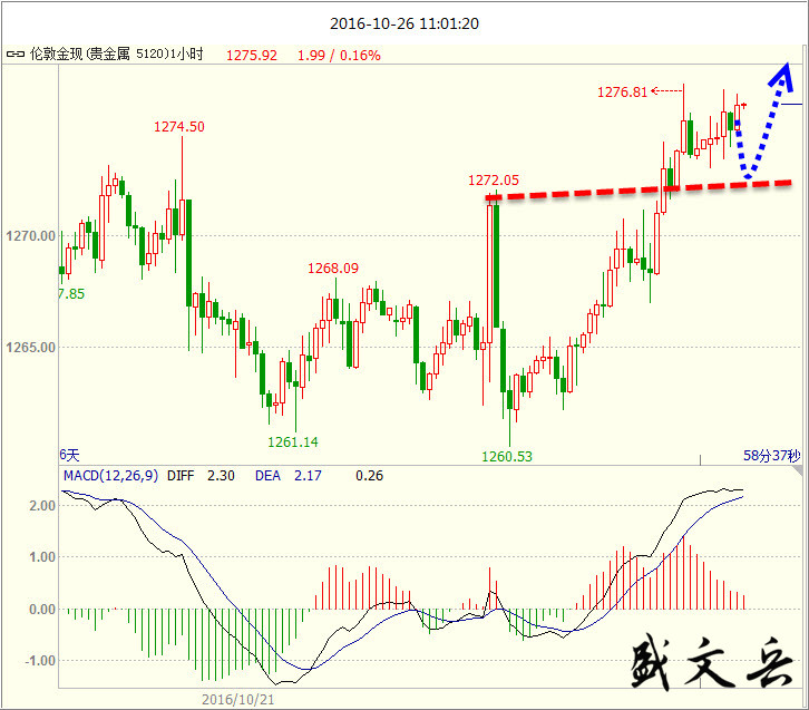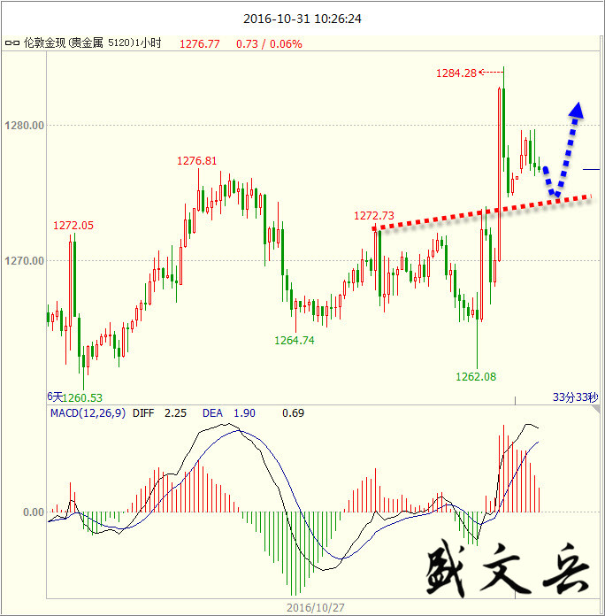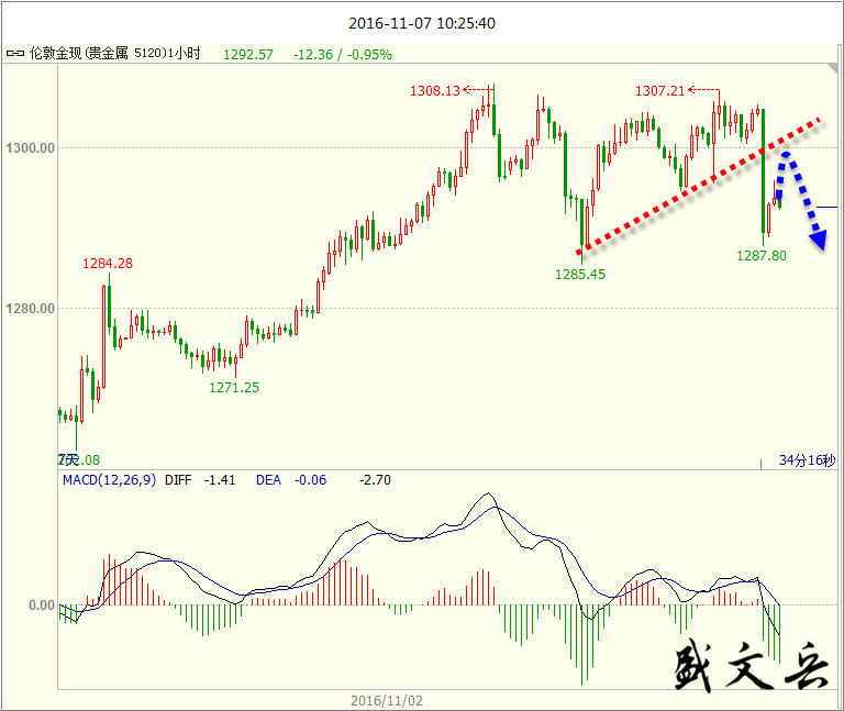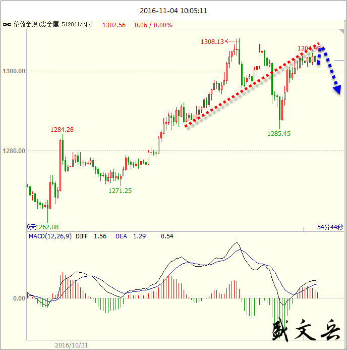 所有的努力都不会完全白费,你付出多少时间和精力,都是在对未来积累。世界上什么都不公平,唯独时间最公平,你是懒惰还是努力,时间都会给出结果。 美元指数 美10月新增非农不及预期,美元冲高回落,但薪资增速七年新高,12月或加息。FBI宣布希拉里不会被起诉,美指开盘飙升。重点关注美国大选。 黄金 黄金上周五过山车的