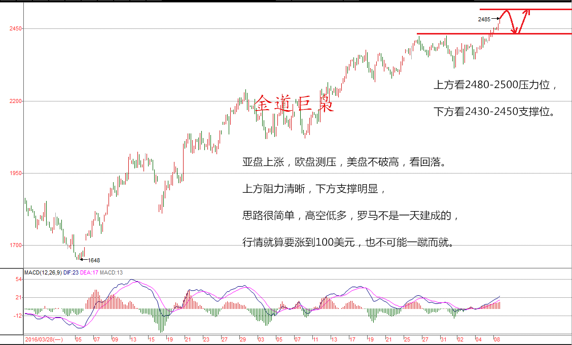 金道巨枭:美盘不破新高依然可空,2480-2500空单进场