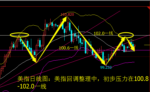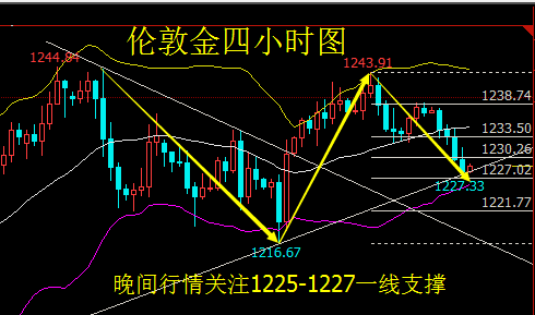黄金周五收跌 周五(2月17日)进入美盘后,由于美指多头的反扑,自100.5反弹至100.9,美指走强打压金价;在没有更多利好消息的刺激和市场获利了解,黄金多头止步1244,失望而归。 其实从小时图上已经看出端倪,美盘初随着美指走强,黄金小时K线连收长上影线的小阴线后,市场试探的收取一根长下影线的小阳线,但随后收取的那
