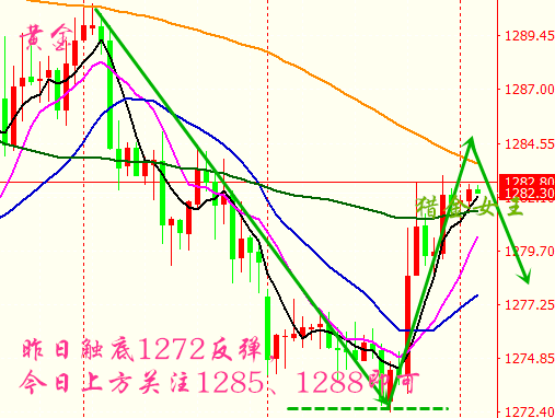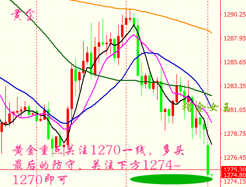 猎金女王:10.23午评,黄金不破1277欧盘反抽先看空! 周一,行情弱势,猎.金(qiandduo520)简单说下: 早间1274-75附近小赚离场,已反手空,三点考虑: 第一,早间下跌1274短线反弹,并未破早间高点及周五反弹高点。欧盘想要破高,必须1、消息面的带动;2、欧盘,突然的拉升。而这波拉升,又必须站稳小时线MA20-1279一线。